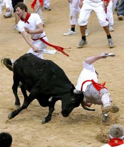 Acest eveniment reprezinta o dovada de initiere. Capitala cultural a Tarii Bascilor, pus ape harta sa zicem asa, de cartea lui Hemingway care descrie nebunia evenimentelor de aici, Pamplona a devenit un oras al curajului tineresc. Zeci de tineri plin de elan, si de cele mai multe ori de Sangria, se strang la linia de start imbracati in alb si cu esarfe rosii la gat. Privind din exterior aceasta cursa pare o barbarie, insa participarea devine o onoare locala si nu numai.